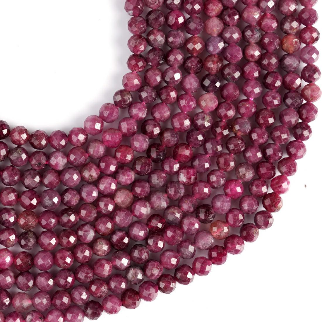 Natural Rubellite Gemstone Round Micro Faceted Beads String 15.5 Inches Long 2/3/4/6 MM for Jewelry Making and Crafting - AS & JG