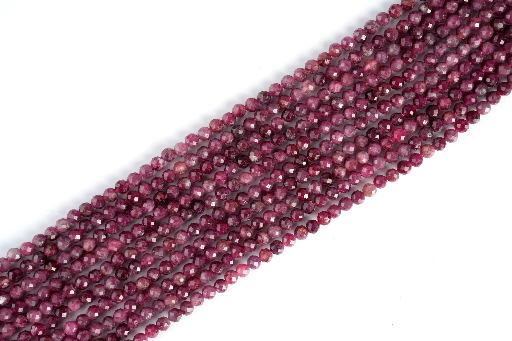String Length : 15.5 Inches Each- **Premium Quality**: Crafted from authentic natural rubellite gemstones, these micro-faceted beads offer unparalleled quality and durability. Each bead is meticulously selected to ensure a stunning finish that will elevate your jewelry creations.- **Versatile Sizes**: Available in 2mm, 3mm, 4mm, and 6mm sizes, this string of beads allows for endless creativity. Whether you're designing delicate earrings or bold statement pieces, you can mix and match sizes to achieve the perfect look for any occasion.- **Vibrant Color Palette**: The rich hues of rubellite range from deep pinks to vibrant reds, adding a touch of elegance and warmth to your designs. These eye-catching colors are sure to attract compliments and make your handcrafted jewelry stand out in any crowd.- **Design Excellence**: Each bead features a micro-faceted surface that catches the light beautifully, creating an enchanting sparkle. This intricate design not only enhances the aesthetic appeal but also adds depth and dimension to your projects.- **Perfect for All Skill Levels**: Whether you're a seasoned jeweler or just starting out in crafting, these beads are easy to work with. Their uniform shape ensures consistent results every time, making it simple for anyone to create stunning jewelry pieces that tell their unique story.Transform your crafting experience with our Natural Rubellite Gemstone Round Micro Faceted Beads! Perfect for adding a personal touch to gifts or expressing your own style through handmade creations. Let each bead inspire you as you bring your artistic vision to life!Number of beads per 15.5" strandWe sell our products by the strand, not by the number of beads. The following chart is for reference only. It's for traditional round-shaped beads strung continuously without spacer beads or knots in between.2mm in diameter- about 195pcs/strand 3mm in diameter- about 130pcs/strand 4mm in diameter- about 96pcs/strand 6mm in diameter- about 68pcs/strand Note: -Bead sizes are approximate and may have a variation of +/- 0.5mm. -Drill hole sizes are approximate and may have a variation of +/- 0.2mm. -All natural gemstones vary in color and pattern. We try our best to make our photos represent the real products in person.