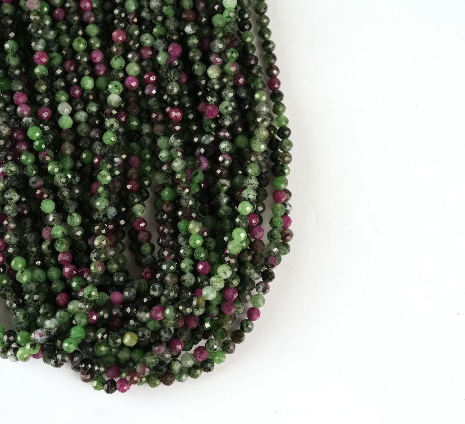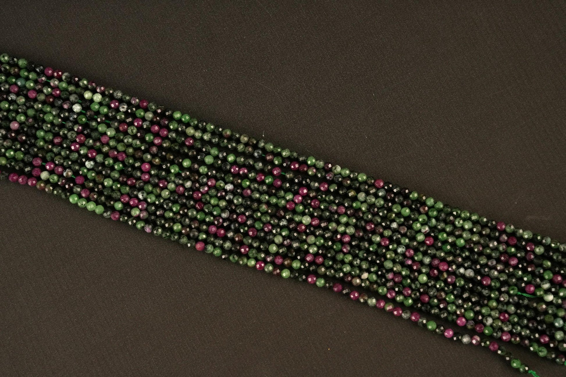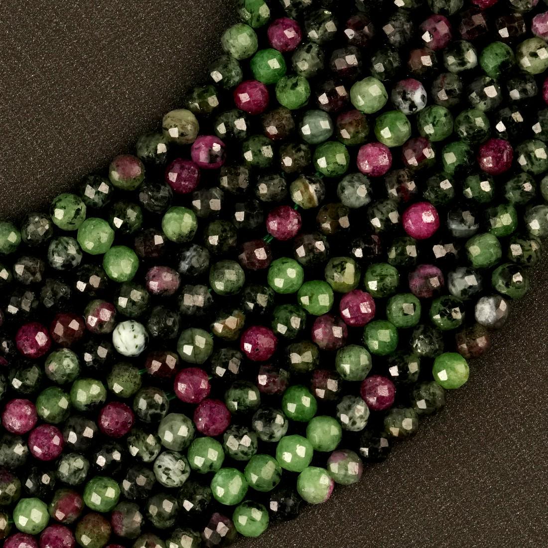 String Length : 15.5 Inches Each- **Premium Quality**: Crafted from authentic natural ruby zoisite, these micro-faceted beads are designed to bring elegance and durability to your jewelry creations. Each bead is a testament to quality, ensuring that your pieces stand the test of time.- **Versatile Sizes**: Available in 2mm, 3mm, 4mm, and 6mm sizes, these beads offer endless possibilities for customization. Whether you’re creating delicate necklaces or bold statement pieces, you'll find the perfect size to match your vision.- **Stunning Aesthetic**: The rich hues of ruby red and vibrant green create a striking contrast that adds depth and character to any design. These unique color combinations will captivate onlookers and elevate your crafting projects with a touch of sophistication.- **Design Excellence**: Each bead is meticulously micro-faceted to reflect light beautifully, enhancing its visual appeal. This attention to detail ensures that every piece you create shines with brilliance, making it perfect for both casual wear and special occasions.- **Empower Your Creativity**: Unleash your artistic potential with these exquisite gemstone beads! Ideal for jewelry making or crafting projects, they allow you to express yourself while creating meaningful gifts for loved ones or stunning accessories for yourself.Transform your creative ideas into reality with our Natural Ruby Zoisite Gemstone Round Micro Faceted Beads—where beauty meets craftsmanship!Number of beads per 15.5" strandWe sell our products by the strand, not by the number of beads. The following chart is for reference only. It's for traditional round-shaped beads strung continuously without spacer beads or knots in between.2mm in diameter- about 195pcs/strand 3mm in diameter- about 130pcs/strand 4mm in diameter- about 96pcs/strand 6mm in diameter- about 68pcs/strand Note: -Bead sizes are approximate and may have a variation of +/- 0.5mm. -Drill hole sizes are approximate and may have a variation of +/- 0.2mm. -All natural gemstones vary in color and pattern. We try our best to make our photos represent the real products in person.