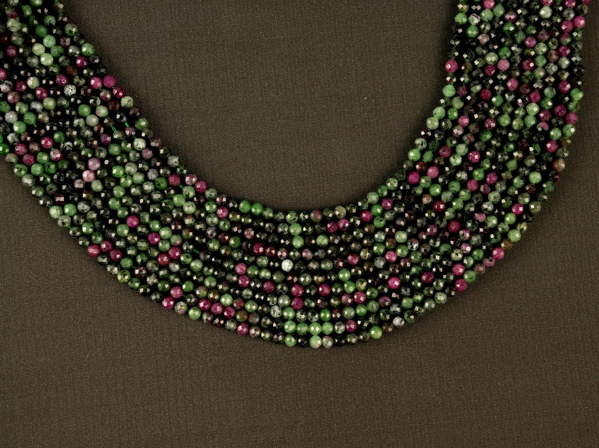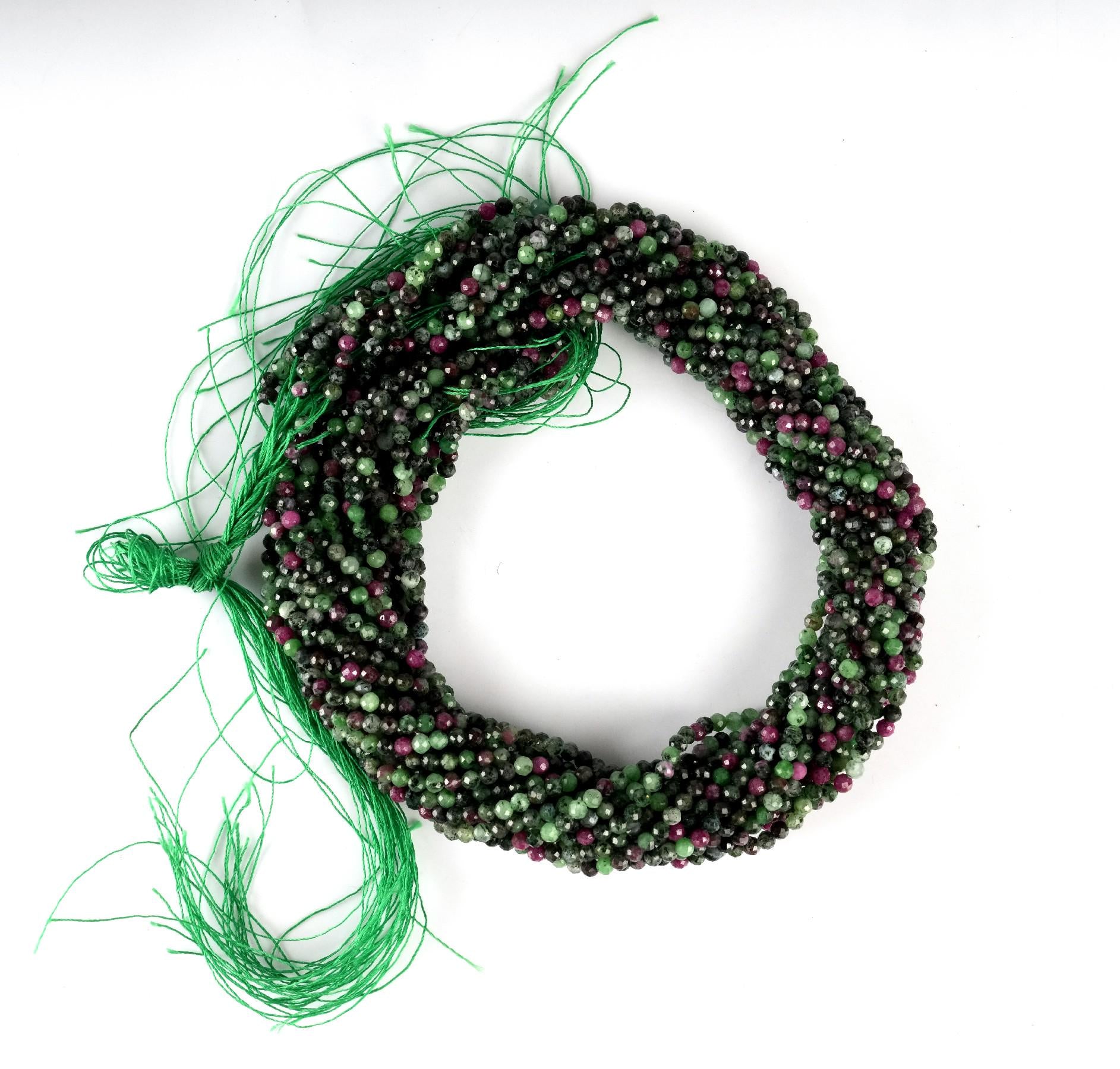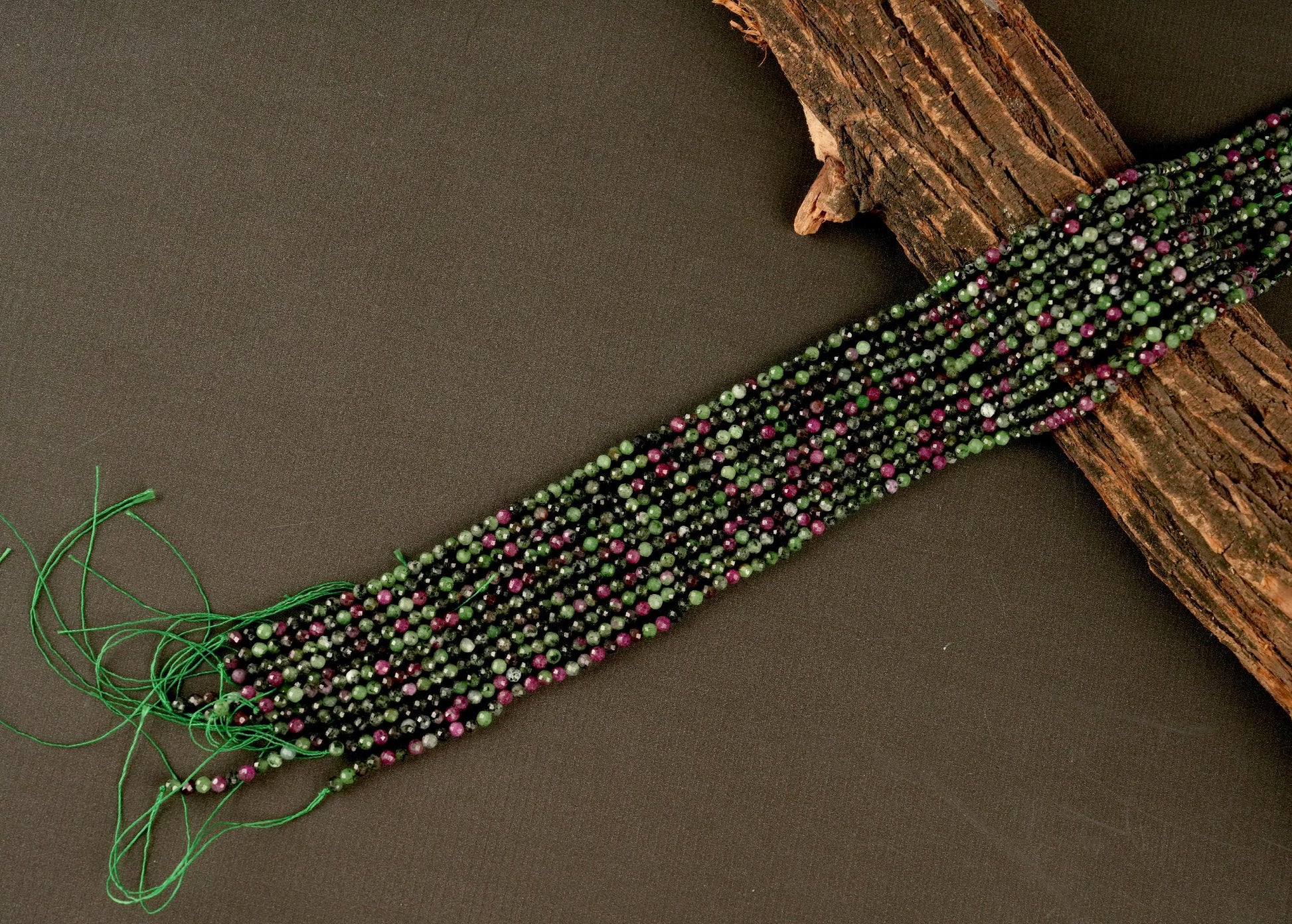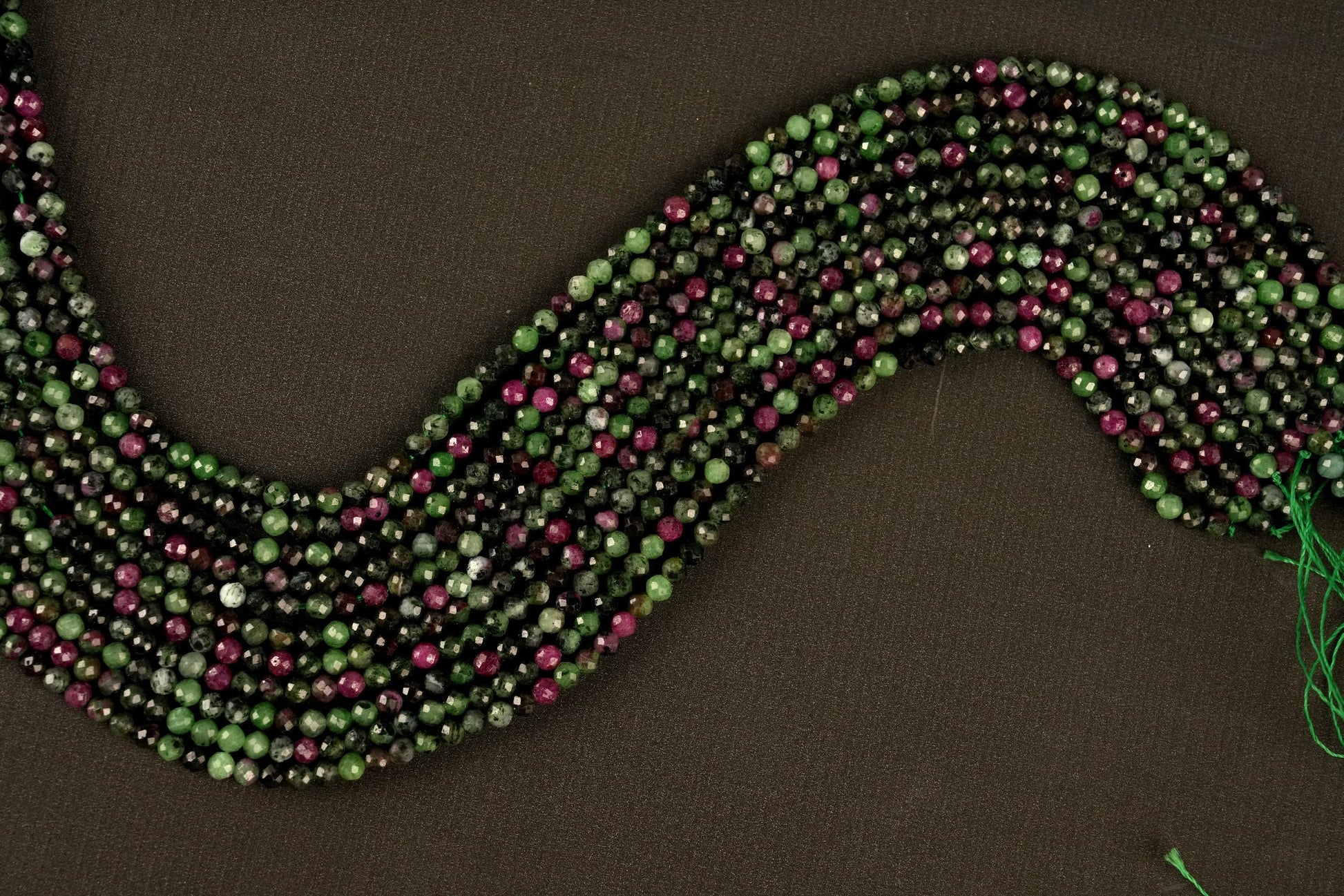 String Length : 15.5 Inches Each- **Premium Quality**: Crafted from authentic natural ruby zoisite, these micro-faceted beads are designed to bring elegance and durability to your jewelry creations. Each bead is a testament to quality, ensuring that your pieces stand the test of time.- **Versatile Sizes**: Available in 2mm, 3mm, 4mm, and 6mm sizes, these beads offer endless possibilities for customization. Whether you’re creating delicate necklaces or bold statement pieces, you'll find the perfect size to match your vision.- **Stunning Aesthetic**: The rich hues of ruby red and vibrant green create a striking contrast that adds depth and character to any design. These unique color combinations will captivate onlookers and elevate your crafting projects with a touch of sophistication.- **Design Excellence**: Each bead is meticulously micro-faceted to reflect light beautifully, enhancing its visual appeal. This attention to detail ensures that every piece you create shines with brilliance, making it perfect for both casual wear and special occasions.- **Empower Your Creativity**: Unleash your artistic potential with these exquisite gemstone beads! Ideal for jewelry making or crafting projects, they allow you to express yourself while creating meaningful gifts for loved ones or stunning accessories for yourself.Transform your creative ideas into reality with our Natural Ruby Zoisite Gemstone Round Micro Faceted Beads—where beauty meets craftsmanship!Number of beads per 15.5" strandWe sell our products by the strand, not by the number of beads. The following chart is for reference only. It's for traditional round-shaped beads strung continuously without spacer beads or knots in between.2mm in diameter- about 195pcs/strand 3mm in diameter- about 130pcs/strand 4mm in diameter- about 96pcs/strand 6mm in diameter- about 68pcs/strand Note: -Bead sizes are approximate and may have a variation of +/- 0.5mm. -Drill hole sizes are approximate and may have a variation of +/- 0.2mm. -All natural gemstones vary in color and pattern. We try our best to make our photos represent the real products in person.