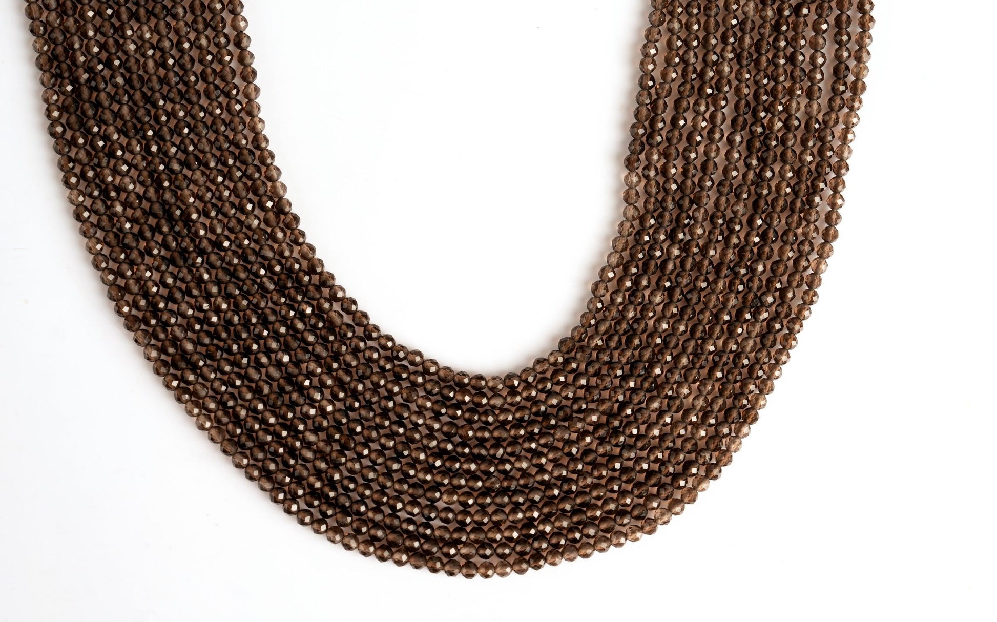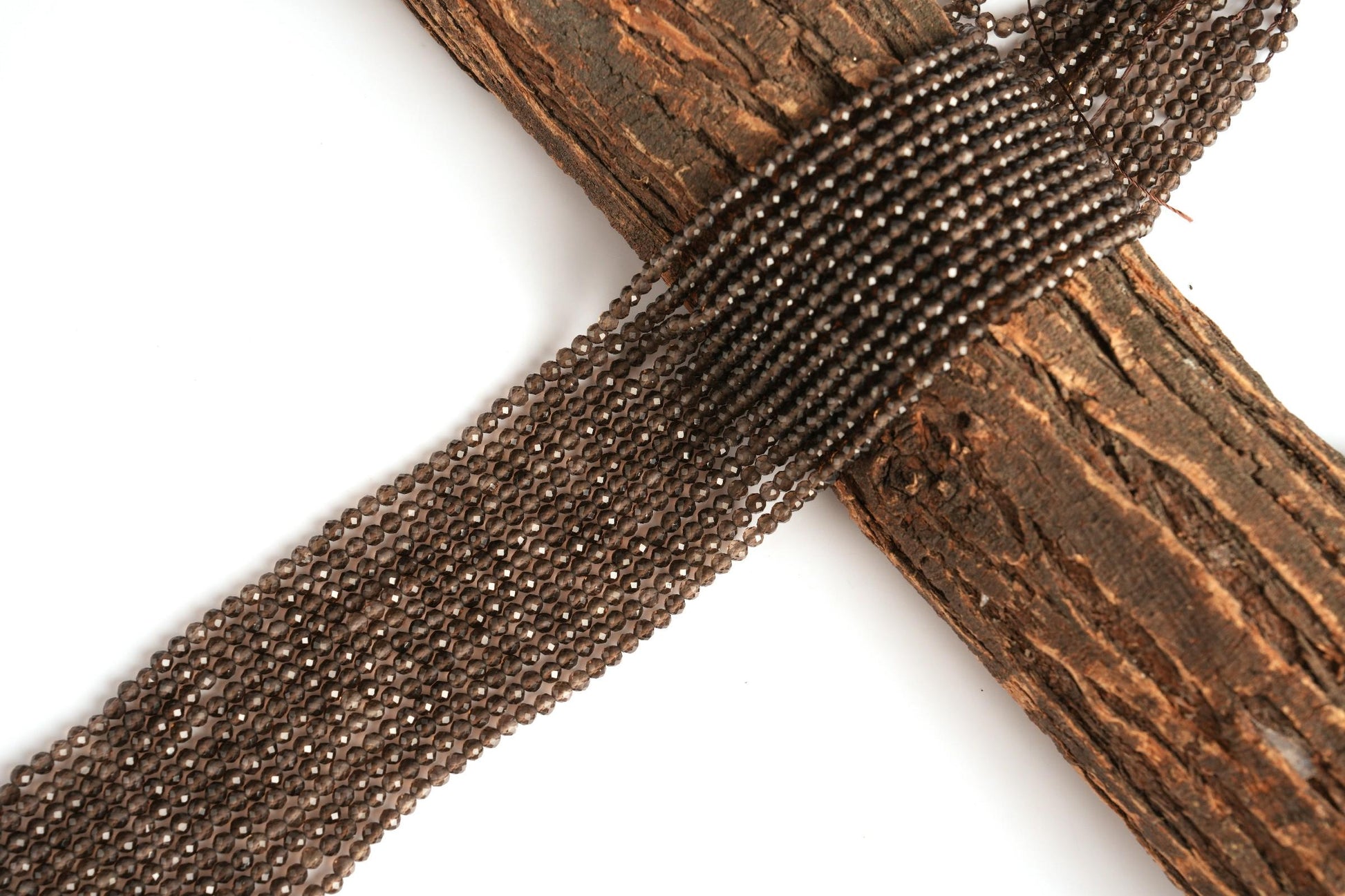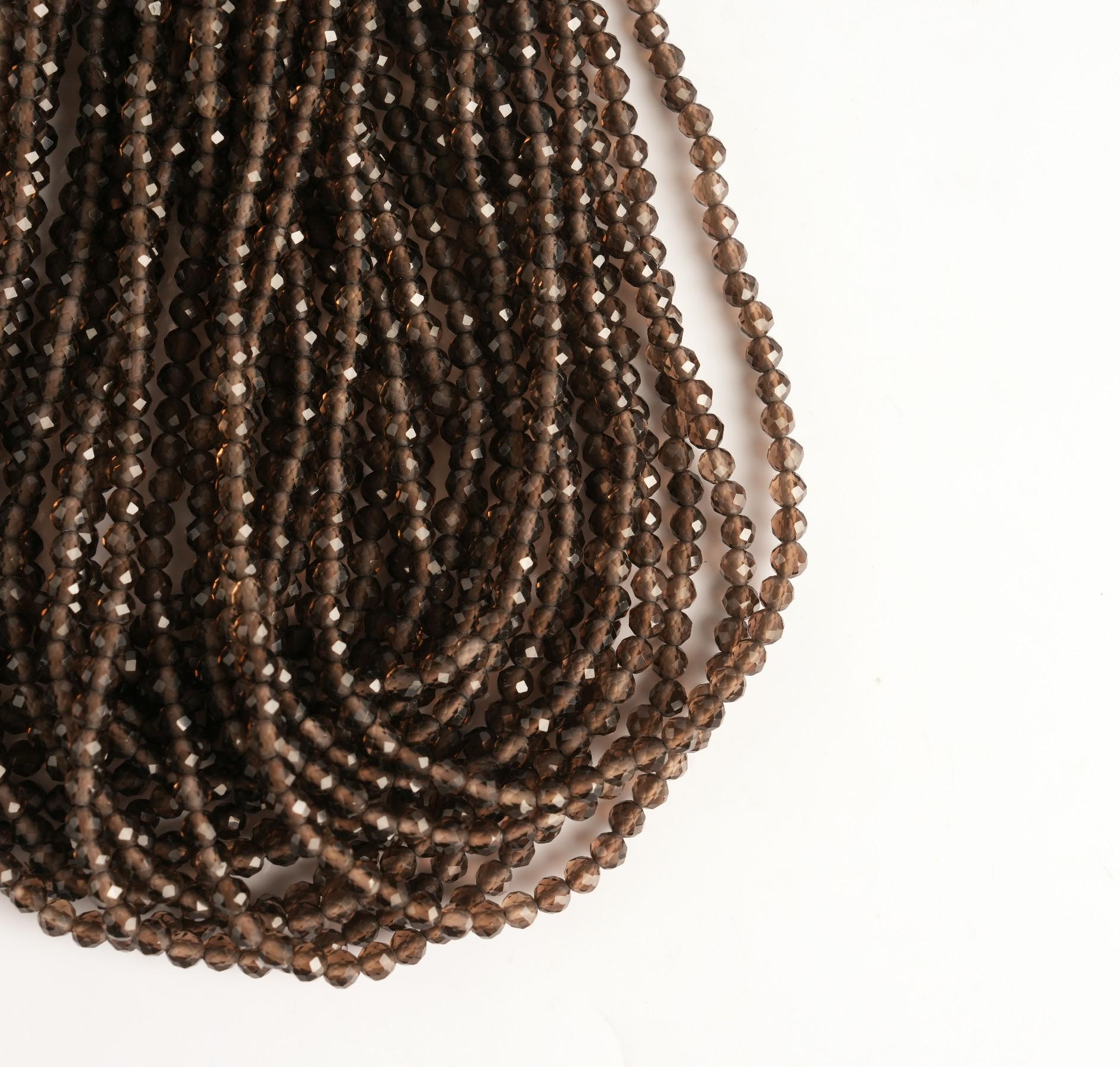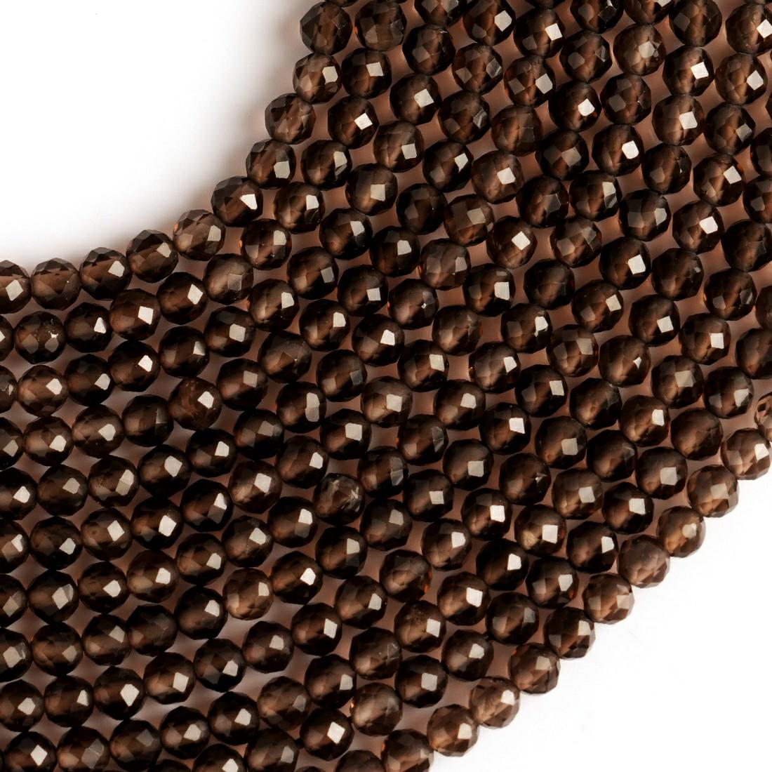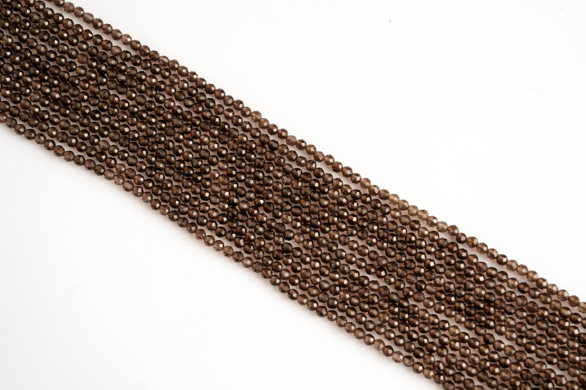 Natural Smoky Quartz Gemstone Round Micro Faceted Beads String 15.5 Inches Long 2/3/4/6 MM for Jewelry Making and Crafting - AS & JG