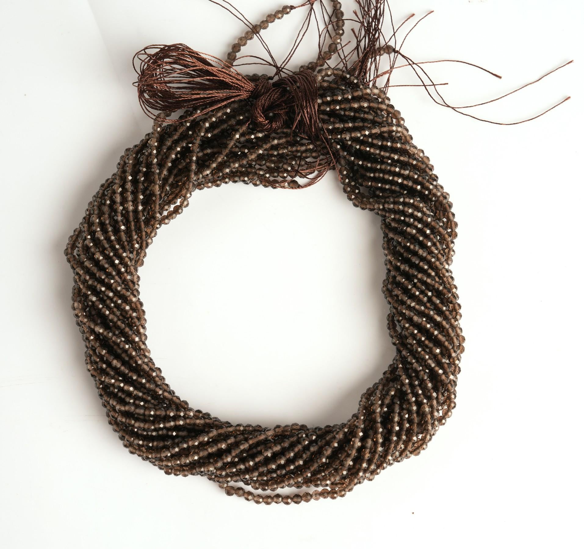 String Length : 15.5 Inches Each- **Premium Quality**: Crafted from genuine natural smoky quartz, these micro-faceted beads offer exceptional durability and a luxurious feel. Each bead is meticulously selected to ensure only the finest quality reaches your hands.- **Versatile Sizes**: Available in 2mm, 3mm, 4mm, and 6mm sizes, this string of beads allows you to create stunning jewelry pieces that suit any style or occasion. Whether you're designing delicate earrings or bold statement necklaces, these versatile sizes provide endless creative possibilities.- **Gorgeous Aesthetic**: The unique smoky hue of each bead adds depth and sophistication to your creations. With their micro-faceted surface reflecting light beautifully, these beads will elevate your jewelry designs from ordinary to extraordinary.- **Easy to Work With**: Measuring at a convenient 15.5 inches long, this string of beads is perfect for quick projects or intricate designs alike. The uniformity in size makes them easy to string together, ensuring a seamless crafting experience without the hassle.- **Embrace Natural Beauty**: Smoky quartz is known not just for its beauty but also for its grounding properties. Incorporate these enchanting beads into your designs as a reminder of nature's calming influence—perfect for creating meaningful gifts or personal treasures that resonate with intention.Elevate your jewelry-making game with our Natural Smoky Quartz Gemstone Round Micro Faceted Beads! Unleash your creativity today!Number of beads per 15.5" strandWe sell our products by the strand, not by the number of beads. The following chart is for reference only. It's for traditional round-shaped beads strung continuously without spacer beads or knots in between.2mm in diameter- about 195pcs/strand 3mm in diameter- about 130pcs/strand 4mm in diameter- about 96pcs/strand 6mm in diameter- about 68pcs/strand Note: -Bead sizes are approximate and may have a variation of +/- 0.5mm. -Drill hole sizes are approximate and may have a variation of +/- 0.2mm. -All natural gemstones vary in color and pattern. We try our best to make our photos represent the real products in person.