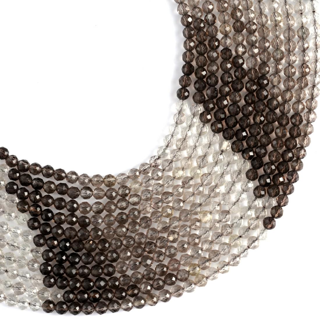 Natural Smoky Quartz Shaded Gemstone Round Micro Faceted Beads String 15.5 Inches Long 2/3/4/6 MM for Jewelry Making and Crafting - AS & JG
