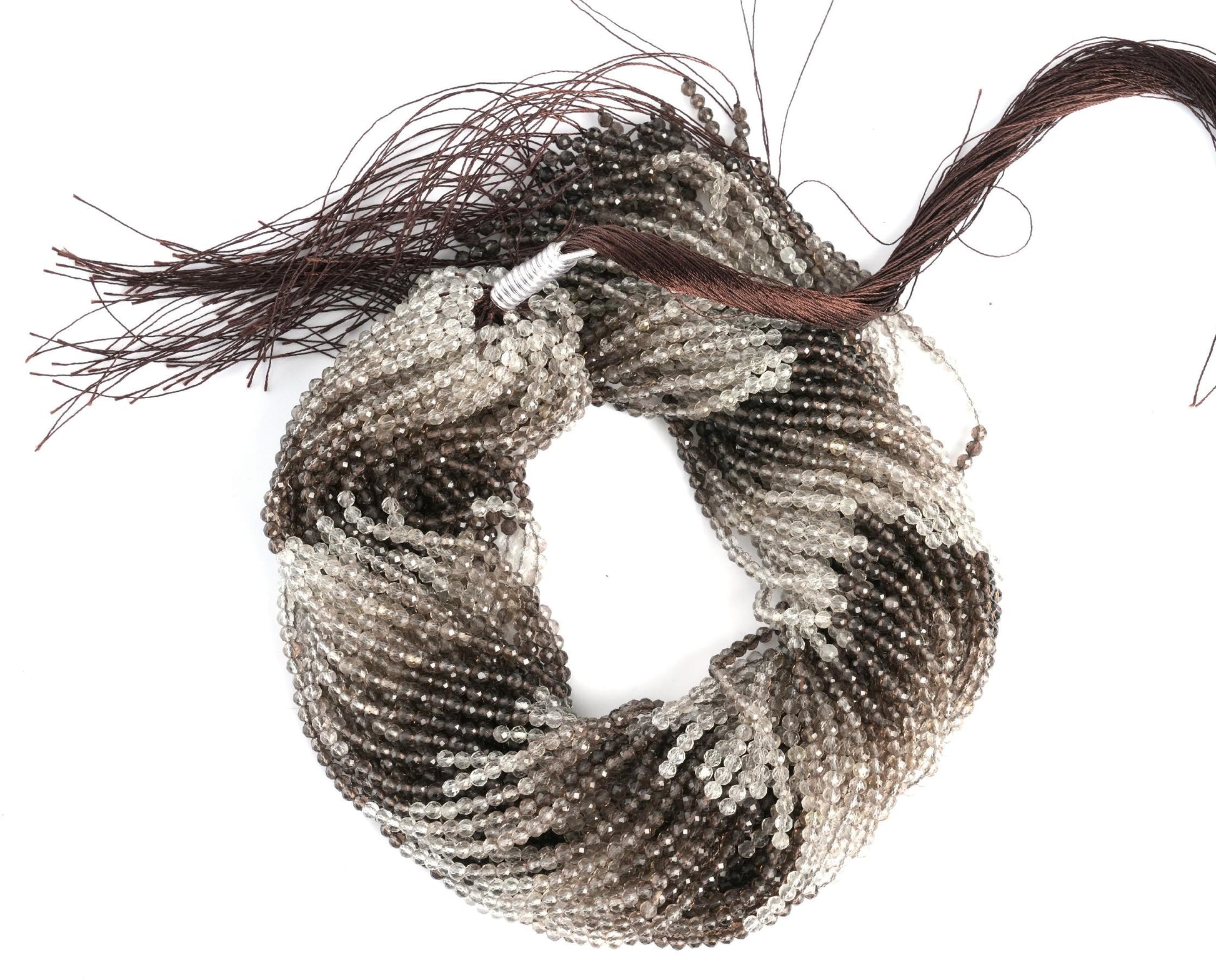 String Length : 15.5 Inches Each- **Premium Quality**: Crafted from top-tier natural smoky quartz, these micro faceted beads offer unparalleled quality and durability, ensuring your jewelry creations stand the test of time.- **Versatile Sizes**: Available in 2mm, 3mm, 4mm, and 6mm sizes, these beads provide endless design possibilities. Whether you're creating delicate earrings or bold statement pieces, you'll find the perfect fit for every project.- **Stunning Aesthetic**: The shaded tones of smoky quartz create a captivating gradient effect that adds depth and sophistication to any piece. Elevate your jewelry collection with these exquisite gems that catch the light beautifully.- **Crafting Made Easy**: Each string measures 15.5 inches long, making it easy to work with for all your crafting needs. Enjoy hassle-free creativity as you string them together or incorporate them into various designs effortlessly.- **Unique Connection**: Smoky quartz is known for its grounding properties and ability to promote emotional balance. Wearing jewelry made from these beautiful beads not only enhances your style but also connects you to nature's calming energy.Transform your creative vision into reality with our Natural Smoky Quartz Shaded Gemstone Round Micro Faceted Beads—where elegance meets versatility!Number of beads per 15.5" strandWe sell our products by the strand, not by the number of beads. The following chart is for reference only. It's for traditional round-shaped beads strung continuously without spacer beads or knots in between.2mm in diameter- about 195pcs/strand 3mm in diameter- about 130pcs/strand 4mm in diameter- about 96pcs/strand 6mm in diameter- about 68pcs/strand Note: -Bead sizes are approximate and may have a variation of +/- 0.5mm. -Drill hole sizes are approximate and may have a variation of +/- 0.2mm. -All natural gemstones vary in color and pattern. We try our best to make our photos represent the real products in person