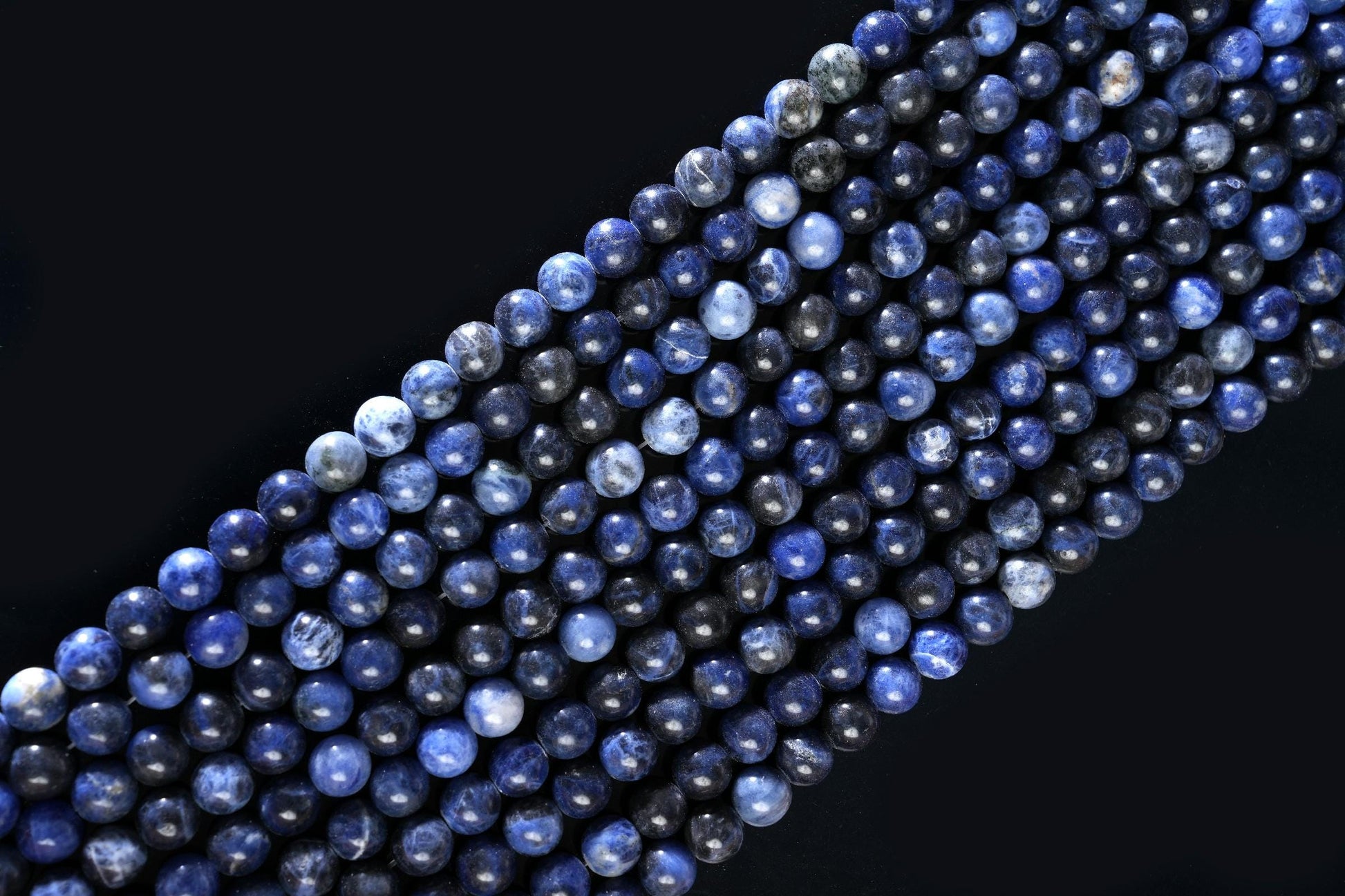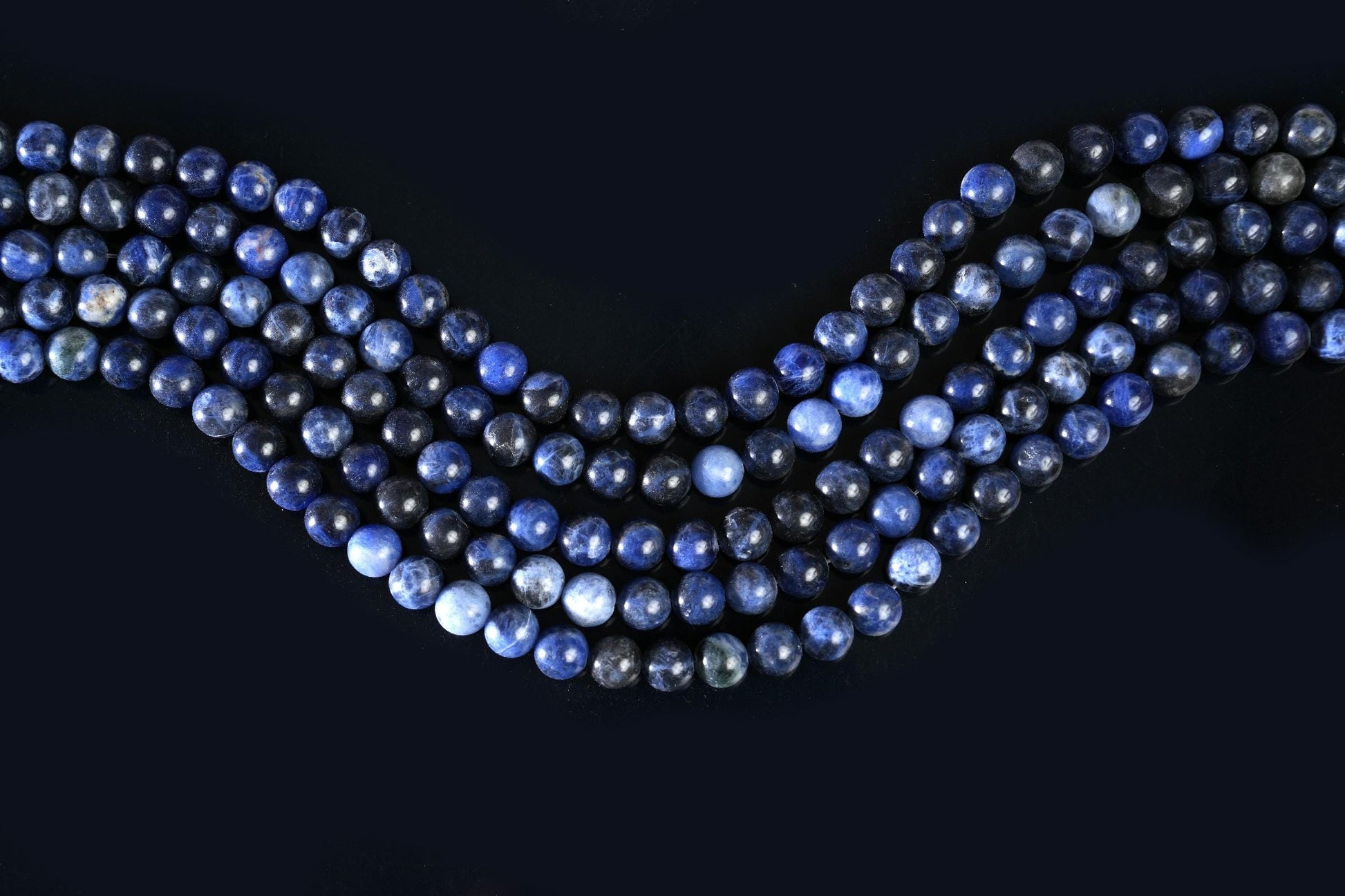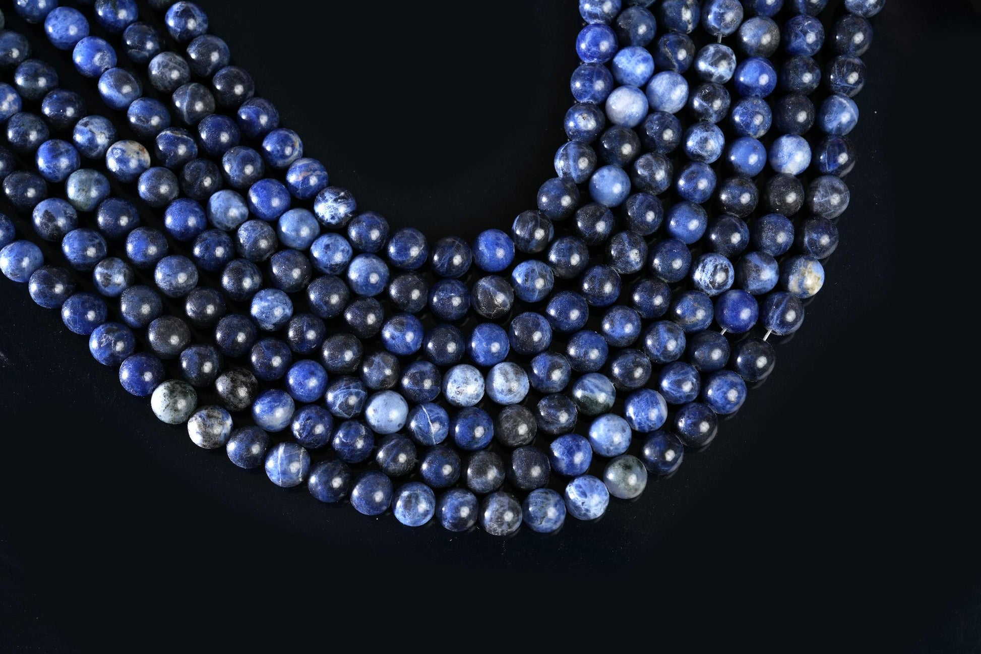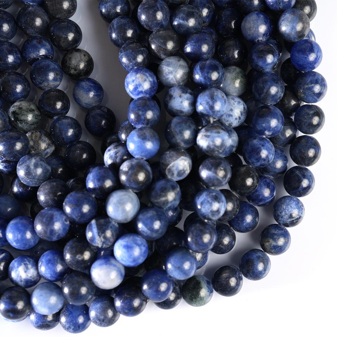 String Length : 15.5 Inches Each- **Premium Quality:** Crafted from top-tier natural sodalite, these AAA gemstone beads promise unparalleled quality and durability. Each bead is meticulously selected to ensure a stunning finish that stands the test of time.- **Versatile Sizes:** Available in 4mm, 6mm, 8mm, and 10mm options, this string of smooth round beads allows you to create jewelry pieces that fit any style or occasion. Whether you're designing delicate earrings or bold statement necklaces, you'll find the perfect size for your creative vision.- **Rich Color Palette:** The deep blue hues of sodalite are not only visually striking but also evoke a sense of calm and tranquility. Incorporate these beautiful beads into your designs to inspire serenity and balance in your life—and those who wear your creations!- **Design Excellence:** Each bead features a smooth surface that enhances its natural beauty while making it easy to work with during crafting. The uniform shape ensures consistent results in every project, elevating your handmade jewelry to professional standards.- **Unique Selling Point:** Beyond aesthetics, sodalite is known for its metaphysical properties—promoting clarity of thought and emotional balance. By choosing these gemstones for your creations, you’re not just making jewelry; you’re offering pieces infused with positive energy and intention.Transform your crafting experience with our Natural Sodalite AAA Gemstone Round Smooth Beads! Perfect for both novice crafters and seasoned jewelers alike—unlock endless possibilities today!Number of beads per 15.5" strandWe sell our products by the strand, not by the number of beads. The following chart is for reference only. It's for traditional round-shaped beads string continuously without spacer beads or knots in between.4mm in diameter- about 96pcs/strand 6mm in diameter- about 68pcs/strand 8mm in diameter- about 48pcs/strand 10mm in diameter- about 38pcs/strand Note: -Bead sizes are approximate and may have a variation of +/- 0.5mm. -Drill hole sizes are approximate and may have a variation of +/- 0.2mm. -All natural gemstones vary in color and pattern. We try our best to make our photos represent the real products in person.