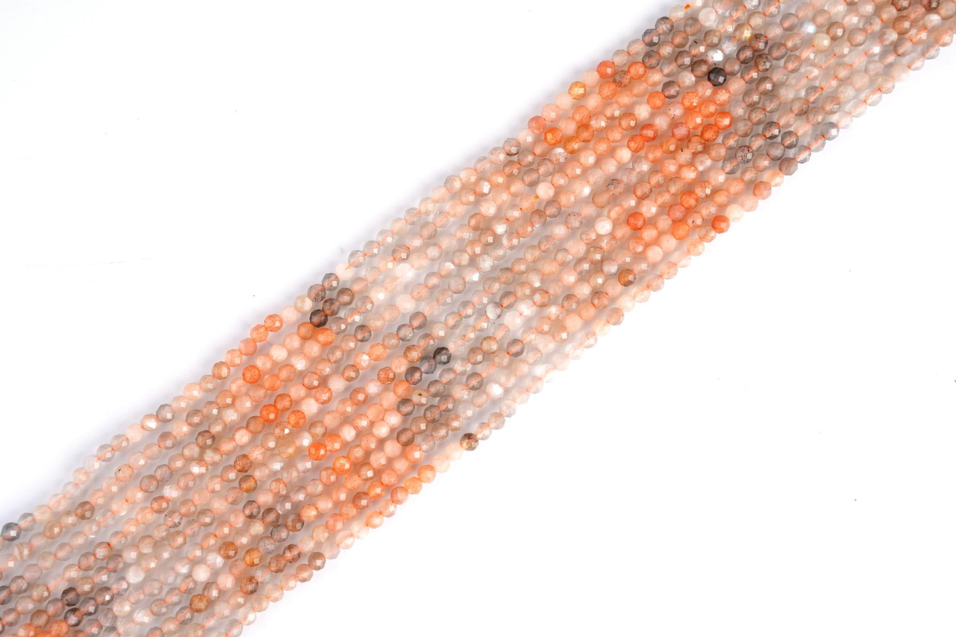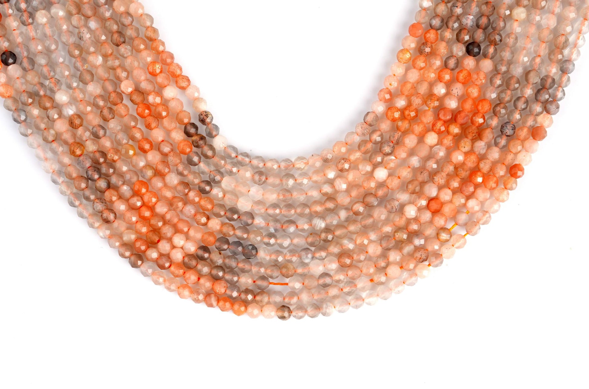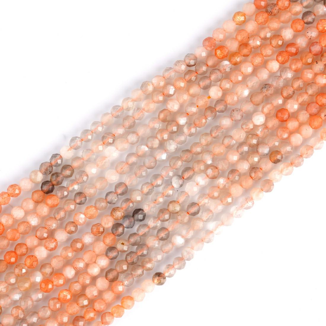 Natural Sunstone Shaded Gemstone Round Micro Faceted Beads String 15.5 Inches Long 2/3/4/6 MM for Jewelry Making and Crafting - AS & JG
