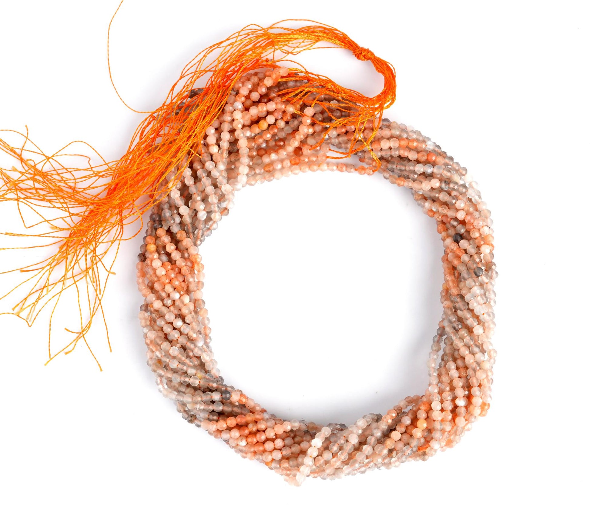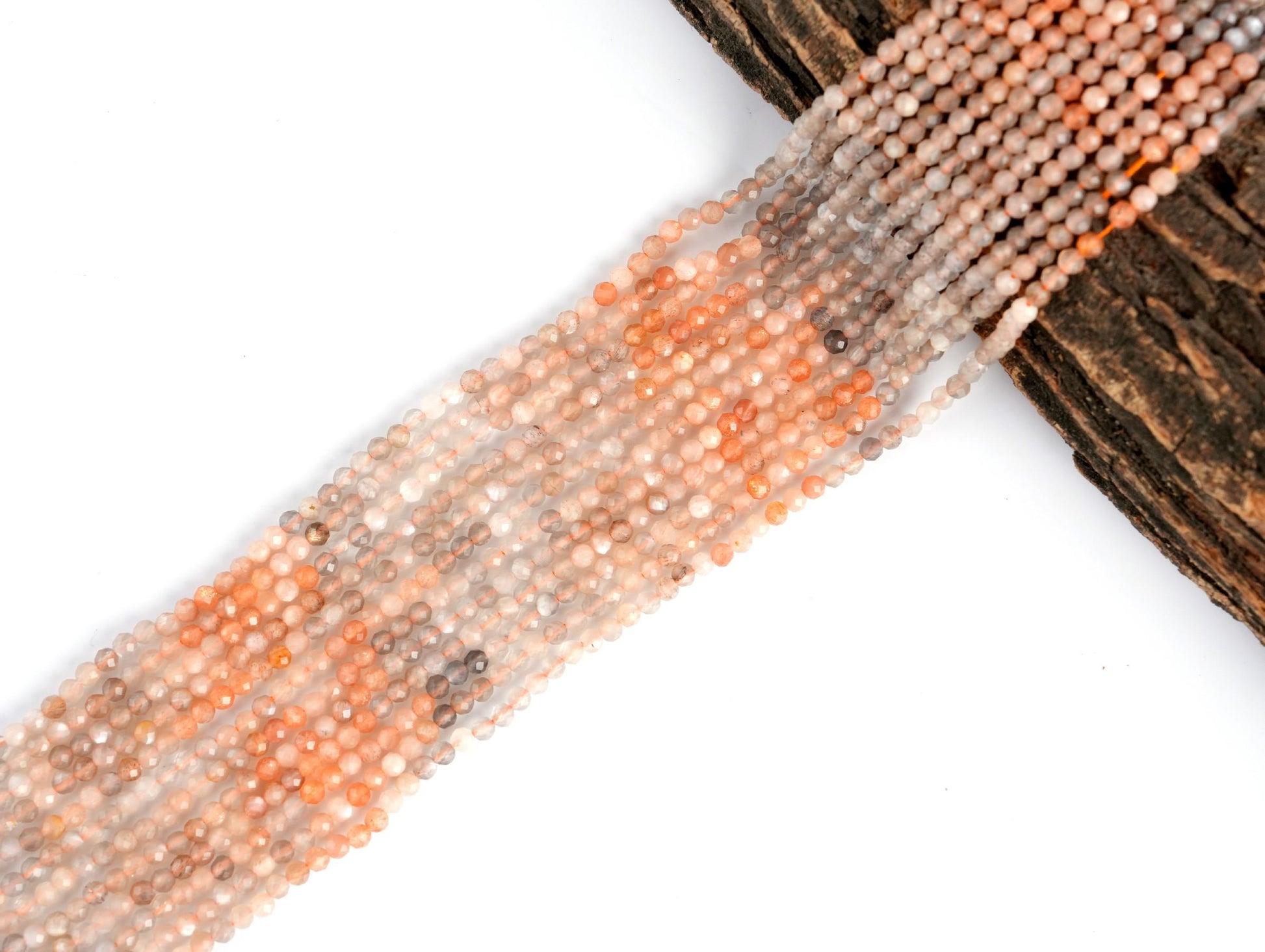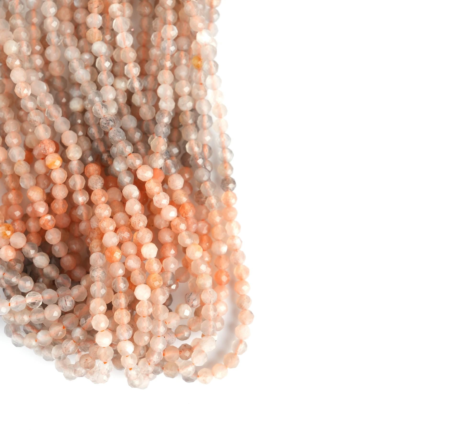 Natural Sunstone Shaded Gemstone Round Micro Faceted Beads String 15.5 Inches Long 2/3/4/6 MM for Jewelry Making and Crafting - AS & JG
