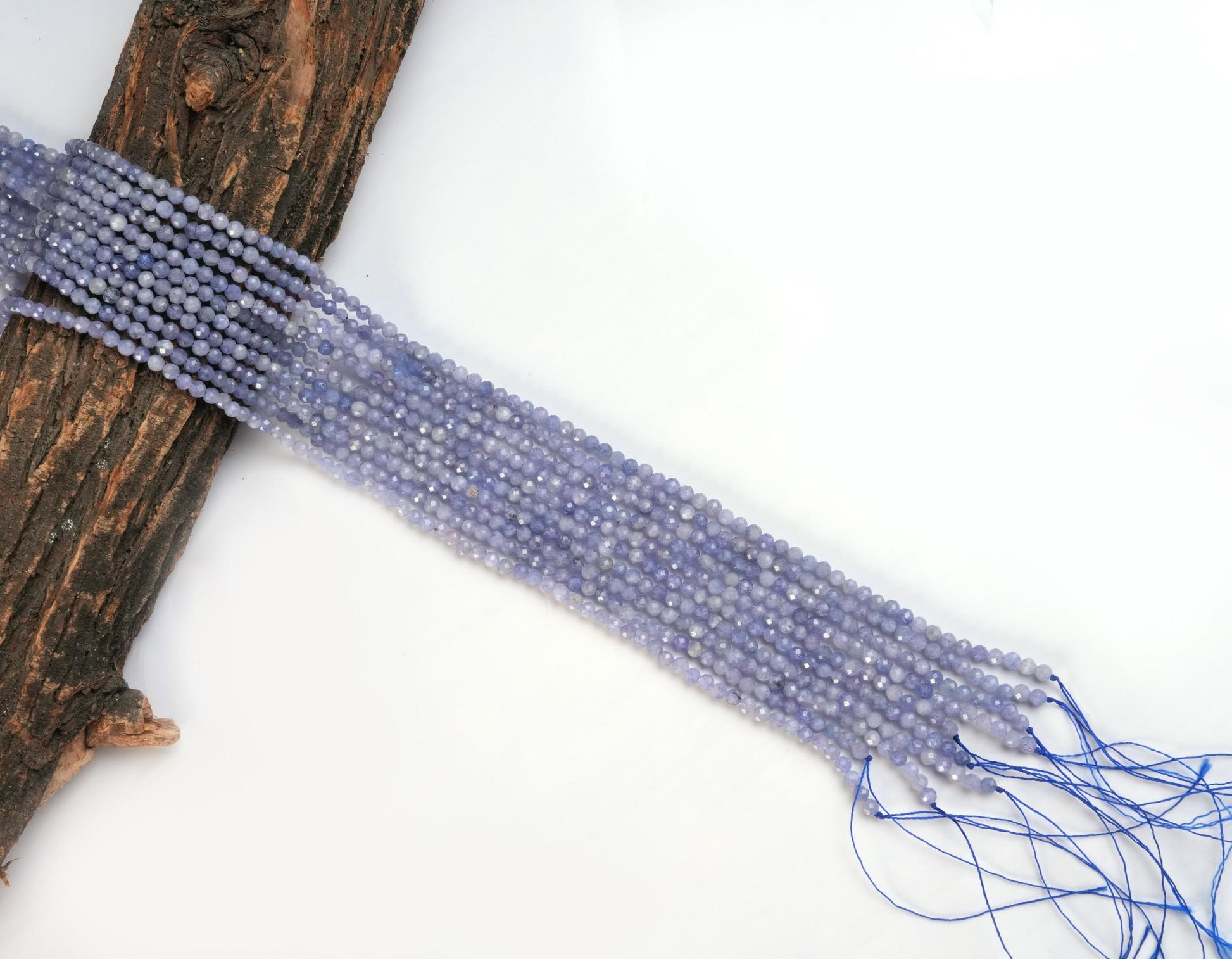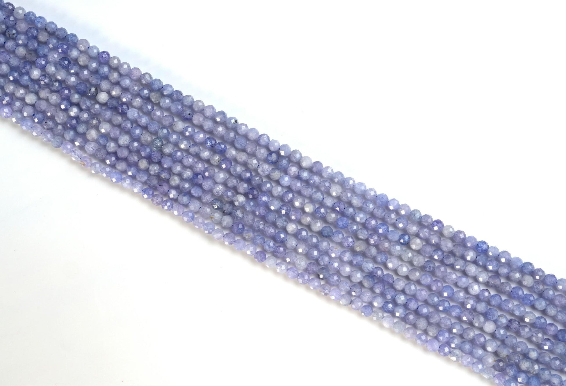 String Length : 15.5 Inches Each-- **Premium Quality:** Crafted from authentic natural tanzanite, these micro faceted beads are designed for durability and elegance. Each bead radiates a stunning hue that reflects light beautifully, ensuring your jewelry pieces stand out.- **Versatile Sizing Options:** Available in 2mm, 3mm, and 4mm sizes, these beads offer endless possibilities for creativity. Whether you're designing delicate necklaces or bold statement pieces, you can mix and match to achieve the perfect look.- **Craftsmanship at Its Finest:** Each bead is meticulously micro faceted to enhance its brilliance and depth. This intricate craftsmanship not only elevates the aesthetic but also adds a touch of sophistication to any project you undertake.- **Endless Creative Potential:** Measuring 15.5 inches long, this string of beads is ideal for various crafting projects—from elegant earrings to personalized bracelets. Unleash your creativity and transform everyday moments into cherished memories with handcrafted jewelry.- **Emotional Connection:** Incorporate the enchanting beauty of tanzanite into your life or gift it to someone special. Known for its calming properties and deep connection to intuition, these beads can serve as a meaningful reminder of peace and clarity in our busy lives.Elevate your jewelry-making experience with our Natural Tanzanite Micro Faceted Beads—where quality meets creativity!Number of beads per 15.5" strandWe sell our products by the strand, not by the number of beads. The following chart is for reference only. It's for traditional round-shaped beads strung continuously without spacer beads or knots in between.2mm in diameter- about 195pcs/strand 3mm in diameter- about 130pcs/strand 4mm in diameter- about 96pcs/strand 6mm in diameter- about 68pcs/strand Note: -Bead sizes are approximate and may have a variation of +/- 0.5mm. -Drill hole sizes are approximate and may have a variation of +/- 0.2mm. -All natural gemstones vary in color and pattern. We try our best to make our photos represent the real products in person.
