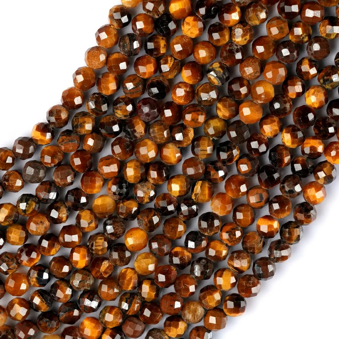 Natural Tiger's Eye Gemstone Round Micro Faceted Beads String 15.5 Inches Long 2/3/4/6 MM for Jewelry Making and Crafting - AS & JG