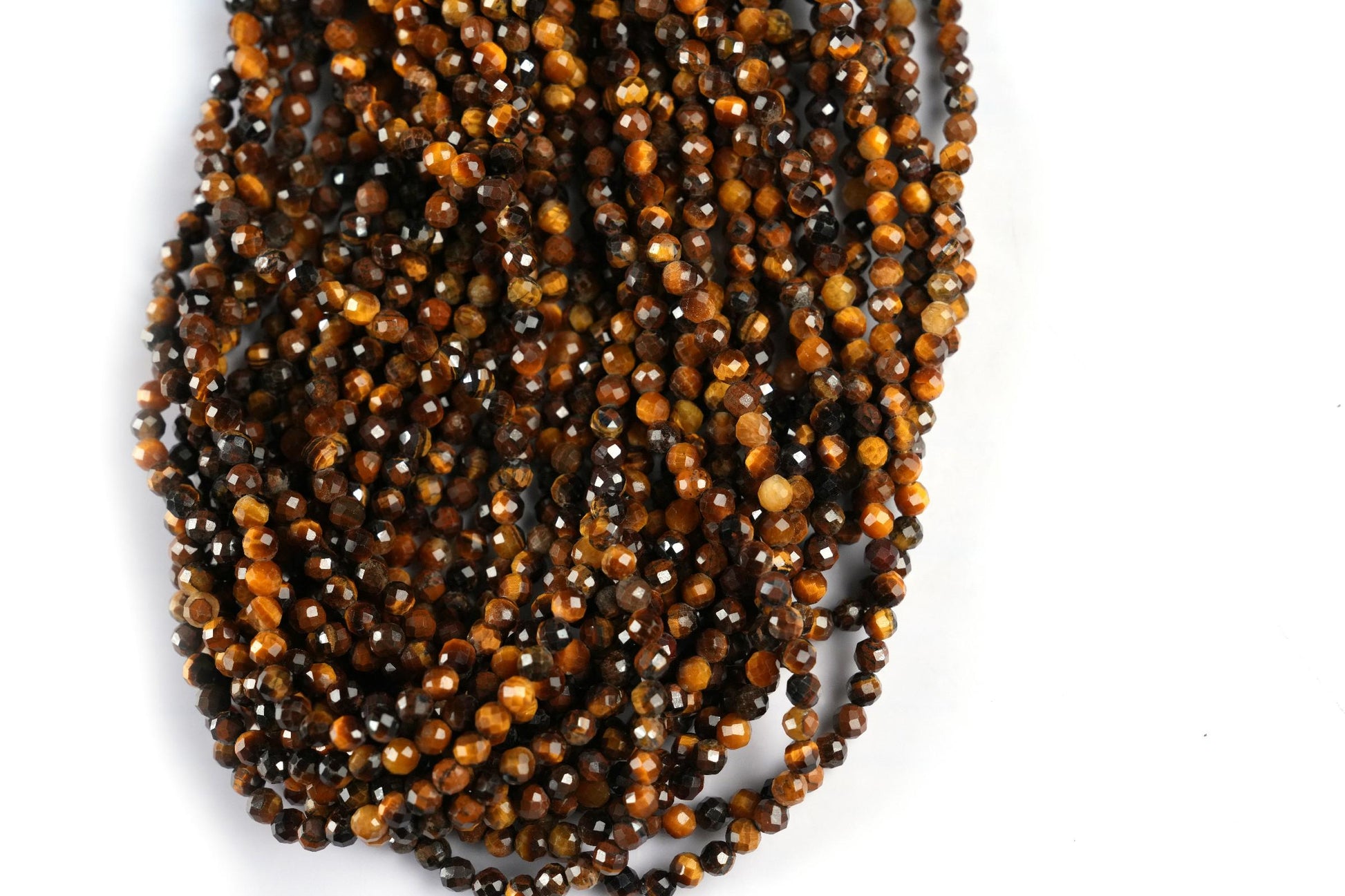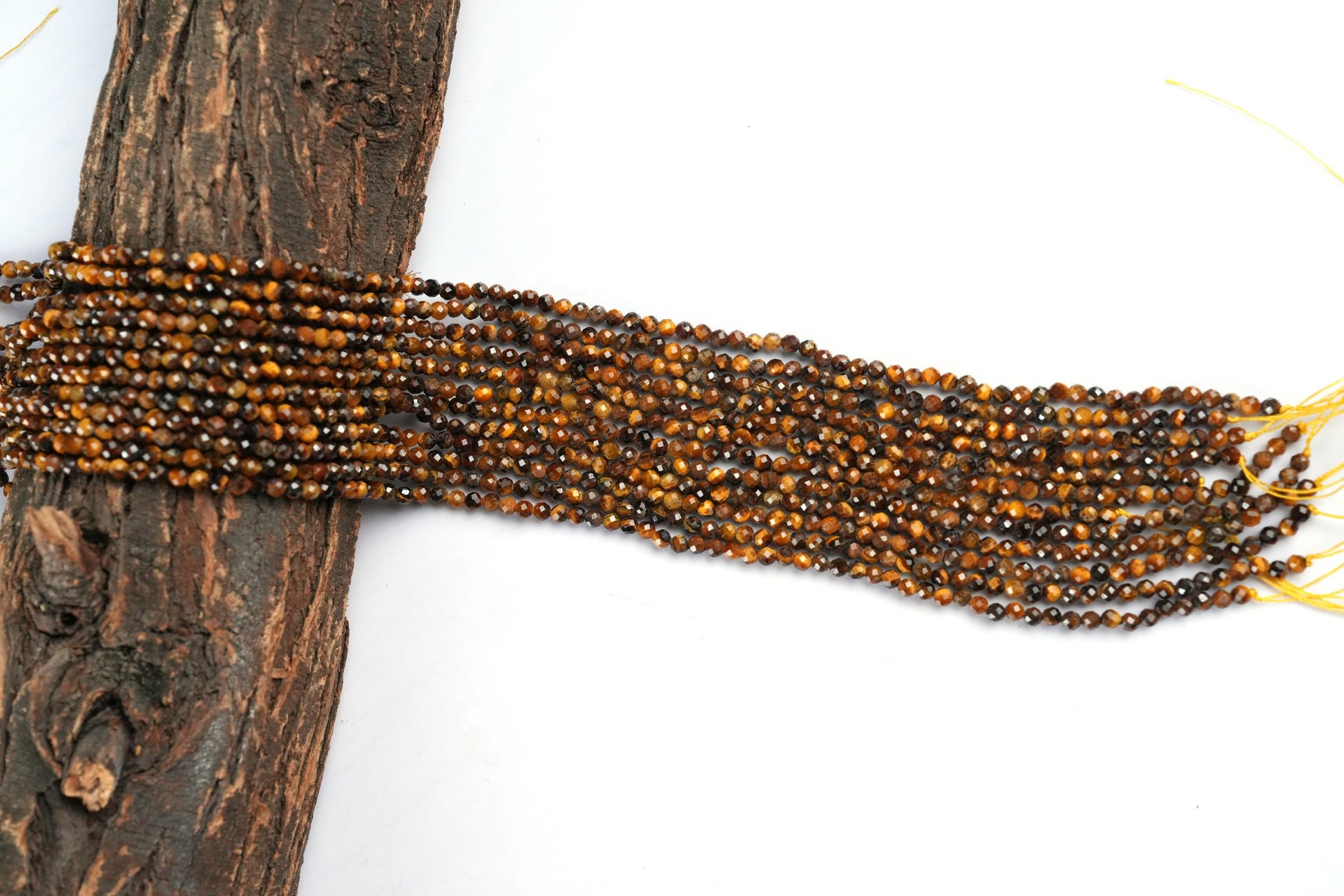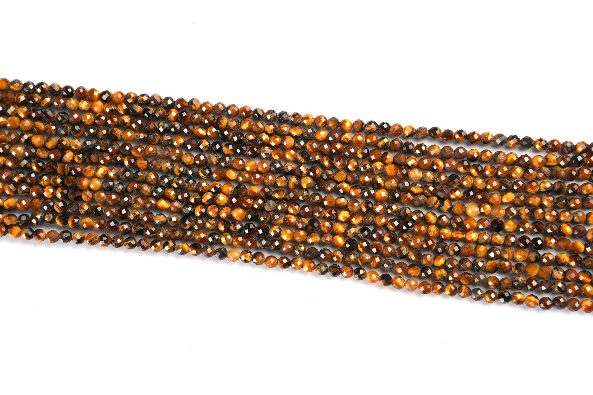 String Length : 15.5 Inches Each- **Premium Quality**: Crafted from top-tier natural tiger's eye, these micro faceted beads promise unparalleled quality and durability. Each bead is meticulously selected to ensure you receive only the finest for your jewelry-making projects.- **Versatile Sizing**: Available in 2mm, 3mm, and 4mm sizes, these beads offer incredible versatility. Whether you're creating delicate necklaces or bold statement pieces, you'll find the perfect fit for your unique designs.- **Stunning Aesthetic**: The captivating golden-brown hues of tiger's eye create a mesmerizing visual effect that catches the light beautifully. These beads add a touch of elegance and sophistication to any piece, making them ideal for both casual wear and special occasions.- **Crafting Made Easy**: Measuring at 15.5 inches long, this string of beads provides ample material for various crafting endeavors. Easily incorporate them into bracelets, earrings, or other creative projects without hassle—perfect for both beginners and seasoned artisans alike!- **Empower Your Creativity**: Unleash your artistic potential with these unique gemstone beads! Not only do they enhance your creations aesthetically, but they also carry metaphysical properties believed to promote confidence and protection—making each piece not just beautiful but meaningful too.Transform your jewelry-making experience with our Natural Tiger's Eye Gemstone Round Micro Faceted Beads. Elevate your crafts today!Number of beads per 15.5" strandWe sell our products by the strand, not by the number of beads. The following chart is for reference only. It's for traditional round-shaped beads strung continuously without spacer beads or knots in between.2mm in diameter- about 195pcs/strand 3mm in diameter- about 130pcs/strand 4mm in diameter- about 96pcs/strand 6mm in diameter- about 68pcs/strand Note: -Bead sizes are approximate and may have a variation of +/- 0.5mm. -Drill hole sizes are approximate and may have a variation of +/- 0.2mm. -All natural gemstones vary in color and pattern. We try our best to make our photos represent the real products in person.