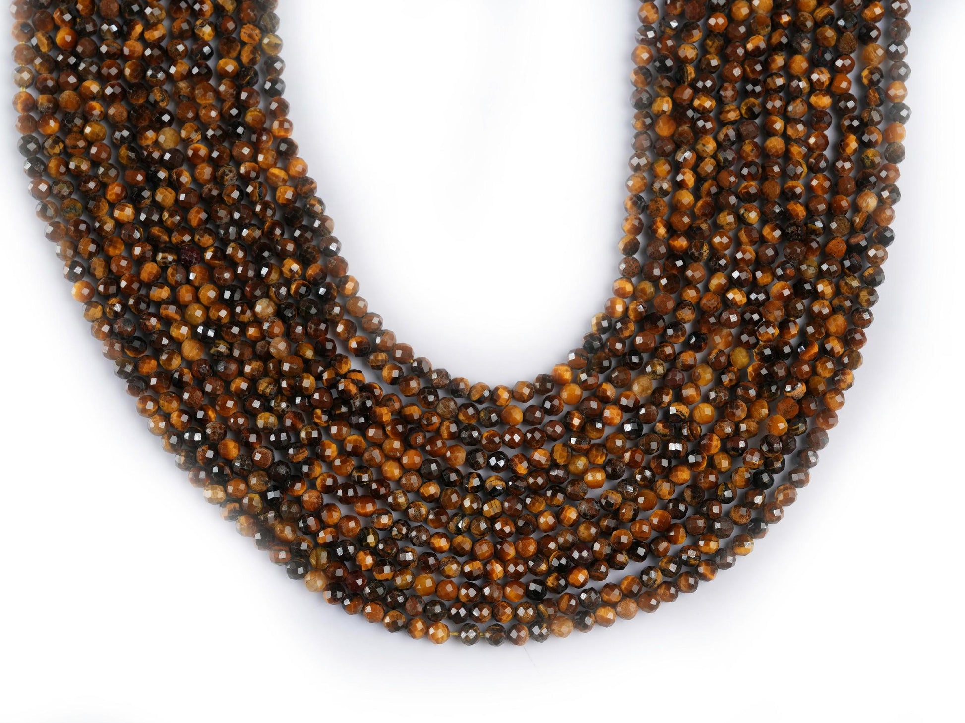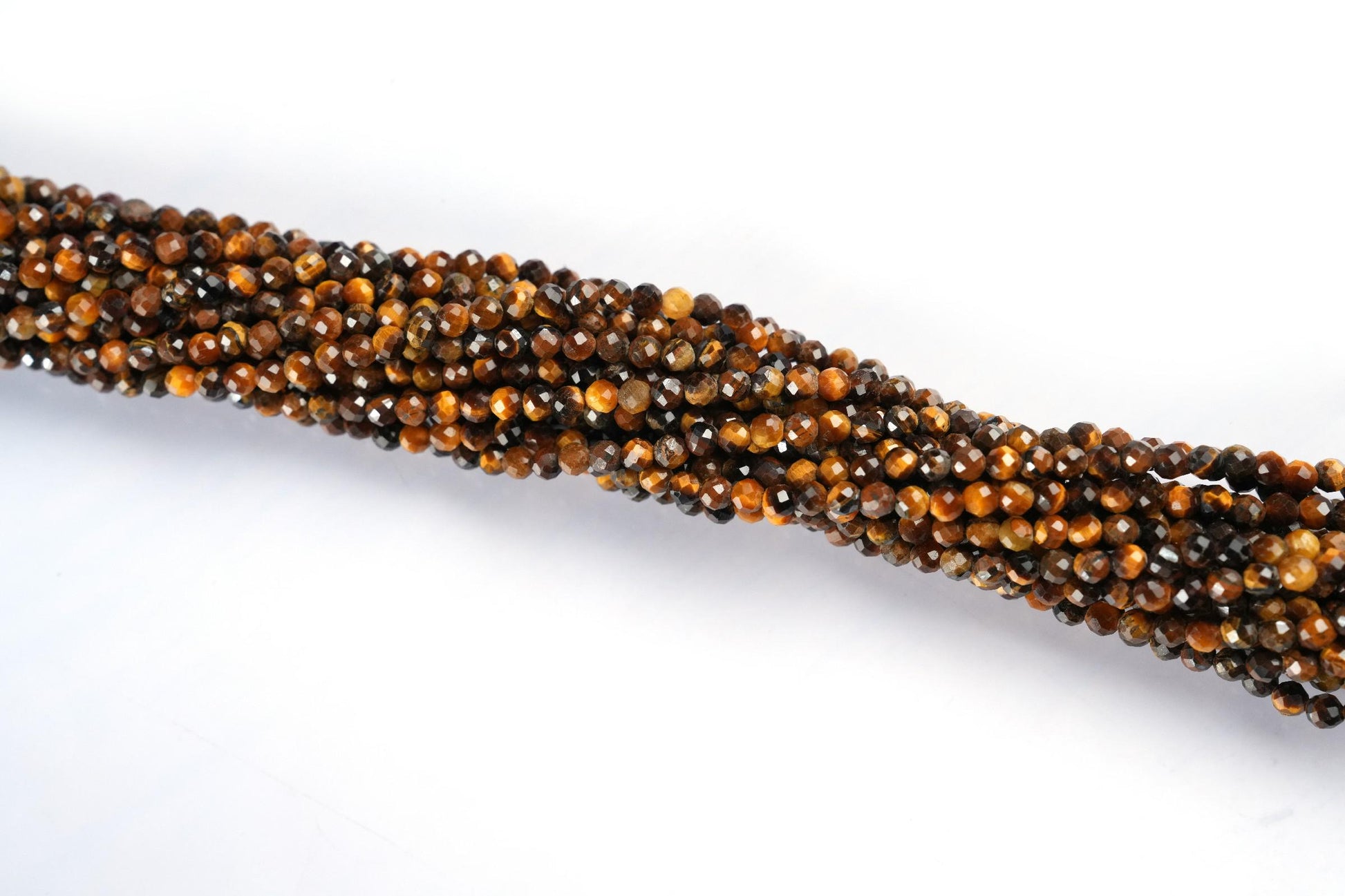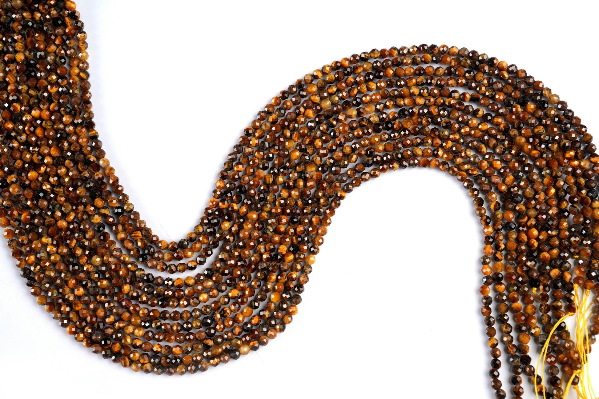 String Length : 15.5 Inches Each- **Premium Quality**: Crafted from top-tier natural tiger's eye, these micro faceted beads promise unparalleled quality and durability. Each bead is meticulously selected to ensure you receive only the finest for your jewelry-making projects.- **Versatile Sizing**: Available in 2mm, 3mm, and 4mm sizes, these beads offer incredible versatility. Whether you're creating delicate necklaces or bold statement pieces, you'll find the perfect fit for your unique designs.- **Stunning Aesthetic**: The captivating golden-brown hues of tiger's eye create a mesmerizing visual effect that catches the light beautifully. These beads add a touch of elegance and sophistication to any piece, making them ideal for both casual wear and special occasions.- **Crafting Made Easy**: Measuring at 15.5 inches long, this string of beads provides ample material for various crafting endeavors. Easily incorporate them into bracelets, earrings, or other creative projects without hassle—perfect for both beginners and seasoned artisans alike!- **Empower Your Creativity**: Unleash your artistic potential with these unique gemstone beads! Not only do they enhance your creations aesthetically, but they also carry metaphysical properties believed to promote confidence and protection—making each piece not just beautiful but meaningful too.Transform your jewelry-making experience with our Natural Tiger's Eye Gemstone Round Micro Faceted Beads. Elevate your crafts today!Number of beads per 15.5" strandWe sell our products by the strand, not by the number of beads. The following chart is for reference only. It's for traditional round-shaped beads strung continuously without spacer beads or knots in between.2mm in diameter- about 195pcs/strand 3mm in diameter- about 130pcs/strand 4mm in diameter- about 96pcs/strand 6mm in diameter- about 68pcs/strand Note: -Bead sizes are approximate and may have a variation of +/- 0.5mm. -Drill hole sizes are approximate and may have a variation of +/- 0.2mm. -All natural gemstones vary in color and pattern. We try our best to make our photos represent the real products in person.